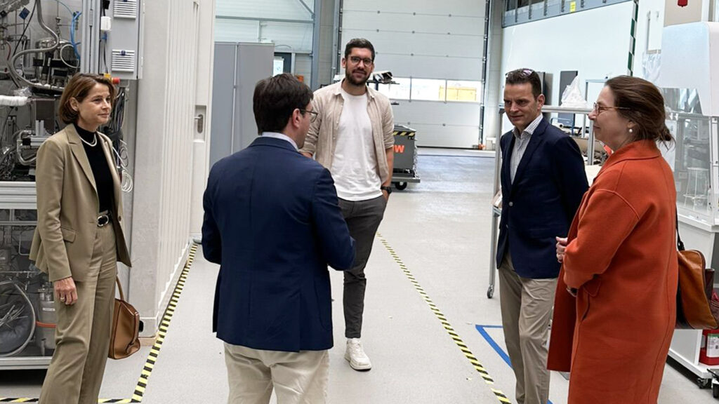 Einblicke in die aktuelle Wasserstoffforschung erhielten die Gäste im Austausch mit Prof. Andreas Peschel, Leiter des Instituts für nachhaltige Wasserstoffwirtschaft, und Dr. Simon Hahn, der mit seiner geplanten Ausgründung „Clean H2eat“ an emissionsarmen Verbrennungsverfahren arbeitet. Der Tenor: Wasserstoff muss bezahlbar, flexibel einsetzbar und im größeren Maßstab verfügbar sein. Dafür braucht es staatliche Förderung – noch.