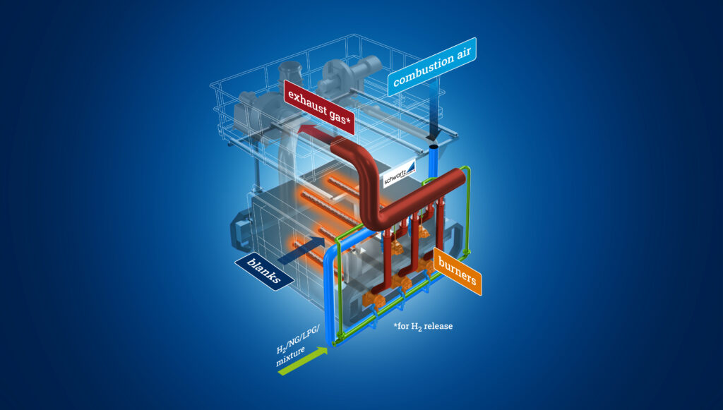 The potential for CO2 savings is huge: a heat treatment plant for press hardening causes up to 3,000 tonnes of CO2 emissions annually. “The demand for climate-friendly components is growing. In addition to electrically heated heat treatment, systems using combustion gases continue to be in high demand. We want to offer our customers the greatest possible flexibility in this area. With a plant such as the one we are demonstrating at HyHeat, customers will later have the option of varying the combustion gas composition during operation without modifying the heating system. The system automatically recognises the fuel gas or fuel gas mixture supplied and adjusts the combustion control to maintain a constant output,” says Frank Wilden, Technical Director at schwartz GmbH. The hydrogen-compatible system offers users long-term planning security, regardless of developments on the gas market.